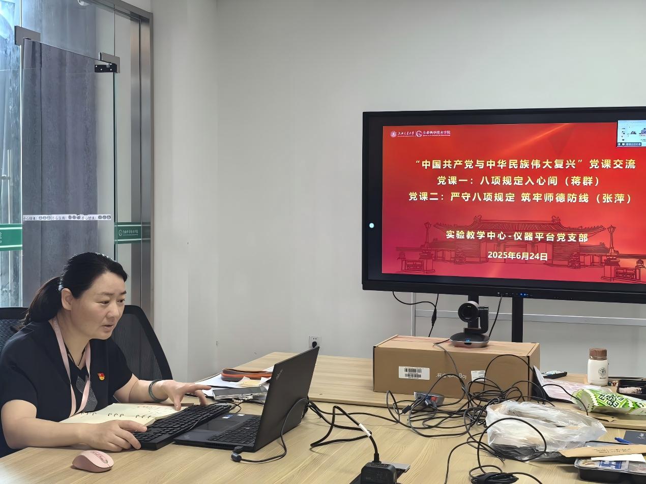 2025年6月24日实验教学中心-仪器平台党支部在叶杰全楼200会议室开展扎实推进深入贯彻中央八项规定学习教育主题党日活动。会议主要围绕中央八项规定精神的学习与贯彻展开,支部全体党员参加大会,支部书记张萍主持会议。