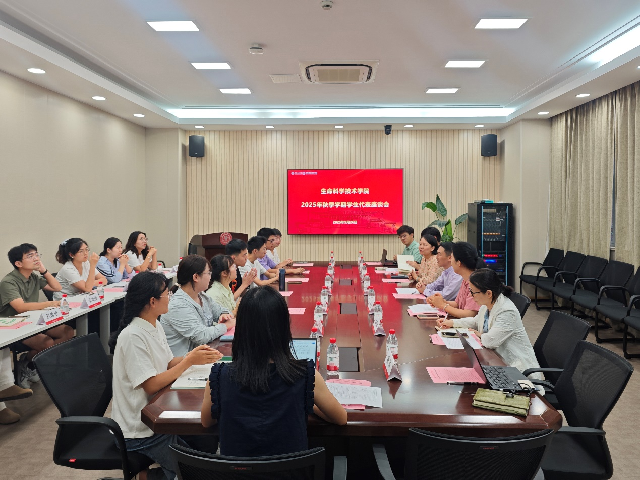 9月26日,生命科学技术学院2025年秋季学期学生代表座谈会在生命药学楼2-116会议室顺利召开。上海交通大学学生处副处长许勇,学院副院长蒋群,党委副书记张燕红,思政教务老师代表,辅导员代表以及本硕博学生代表参加本次座谈。