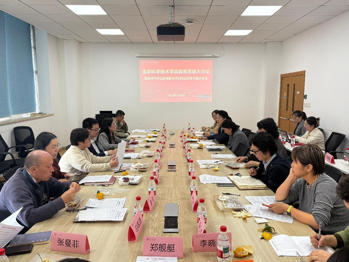 2025 年 11 月 6 日,生命科学技术学院在生物药学楼 3-405 会议室举办教育思想大讨论专题研讨,聚焦教师本科教育教学综合评价改革主题,共话以多元评价为牵引,促进教育教学发展。上海交通大学教务处副处长朱燕民,教学质量控制与改革办公室主任张亭亭、副主任鲁莉莅临指导。学院党委书记冒巍巍,副书记王鑫、张燕红,以及各系教学副系主任、教学委员会成员、督导代表、核心课程负责人与青年教师代表参会,会议由学院副院长蒋群主持。